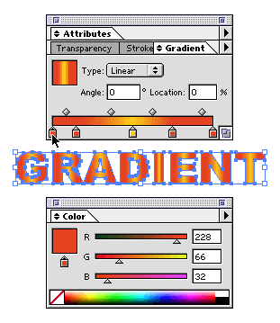 in the Color palette. Notice how each letter has the full gradient applied
