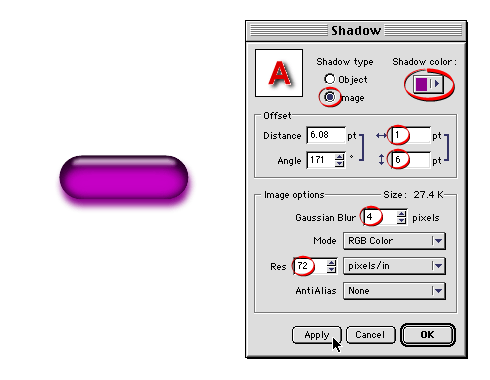Give the shadow a Gaussian Blur radius of 4 pixels and