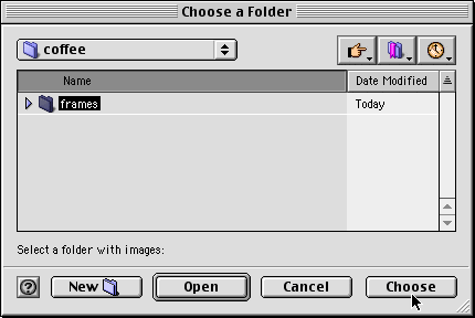 32. Navigate to the folder containing the frames and click "Choose" on the Mac®...
