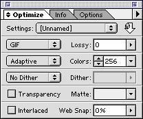 Setup the Optimize palette with these settings:
