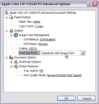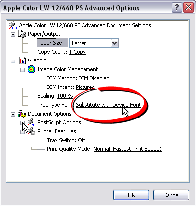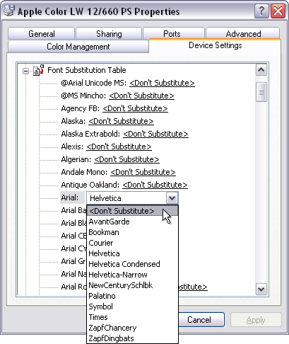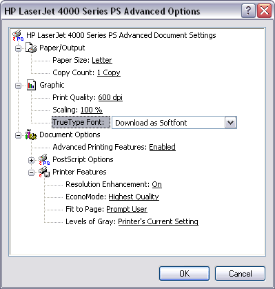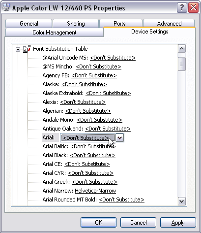 Configuring a PostScript Printer to Avoid Font Substitution - Windows XP