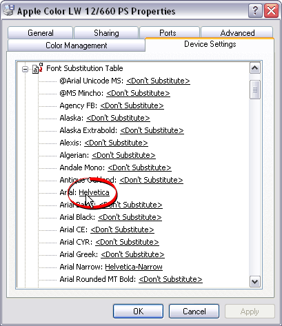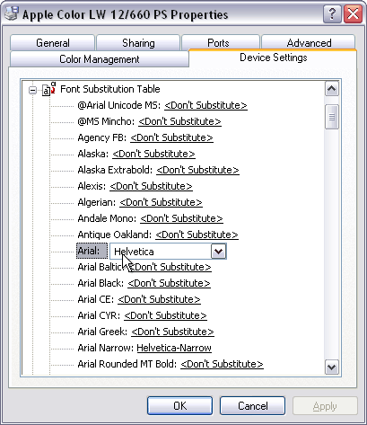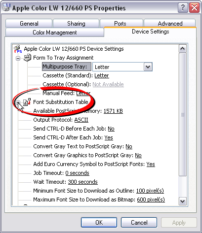 edit the printer's font substitution table. Click the plus sign to the