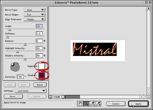 bevel type and "Flat" for the shape. Use the