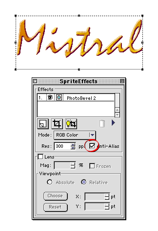 16. In the SpriteEffects palette click the "Anti-Alias"