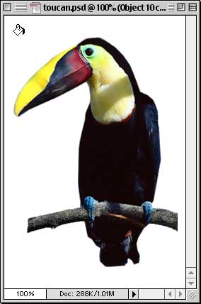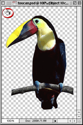 of the toucan. This will give us the partially transparent