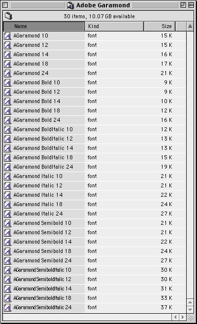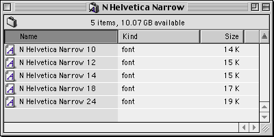 bitmap sizes of Type 1 Helvetica Narrow. Each screen