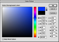 Toolbox (below left). This will activate the Color Picker