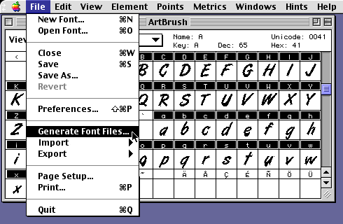 9. Click File > Generate Font Files...