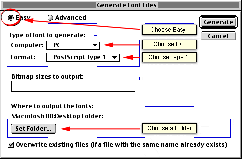 output the font. Click "Generate" when done.