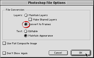 file's layers. Choose "Convert to Frames"