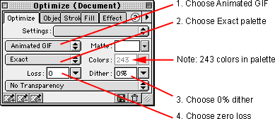 Optimize panel. The GIF format supports a maximum of