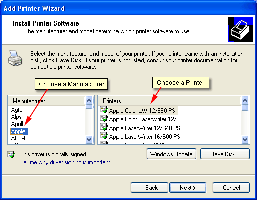 of PostScript printers). If you don't see Apple as an
