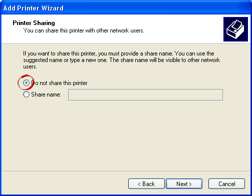 7. If you are setup on a network, the next screen asks you if you want to share the printer with other users on the network.