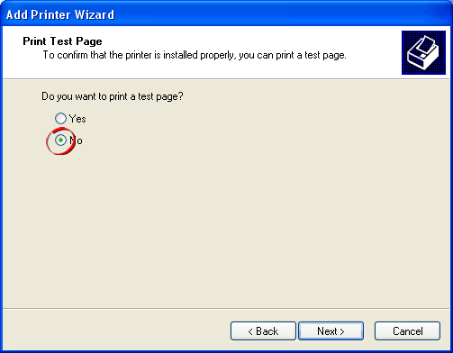 8. The next screen asks if you want to print a test page.