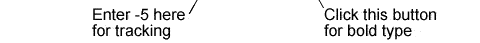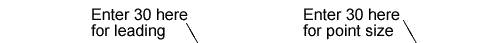 size, 30 for the leading, -5 for tracking and click