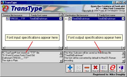 input specifications of the fonts being converted appear