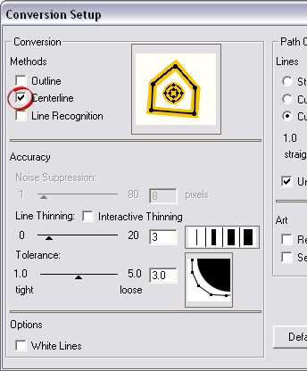 is to place a check mark only in the Centerline checkbox in the "Methods" box