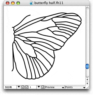 duplicate the butterfly half, then flip it horizontally with the FreeHand "Reflect" command,